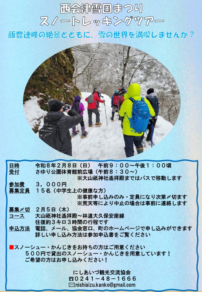 西会津雪国まつりに合わせて、スノートレッキングツアーも開催されます!
